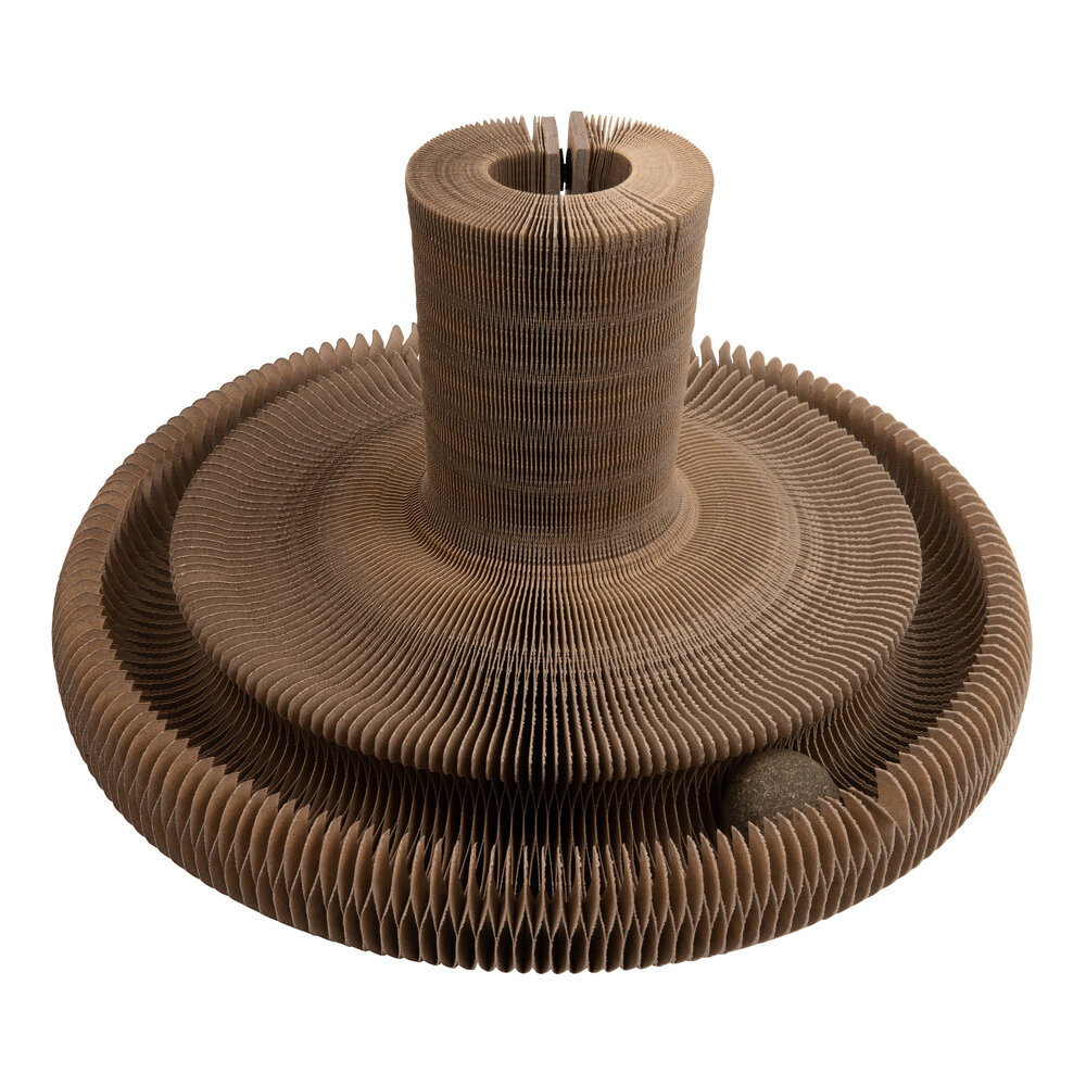 Der Maze Katzenkorb im Hinblick auf das Wohl Ihrer Katze entworfen. Dieses 3-in-1 Möbelstück dient nicht nur als bequemer Ruheplatz und herausforderndes Spielzeug, sondern auch als tolles Kratzmöbel. Dank des integrierten Bällchens aus Katzenminze wird die Geschicklichkeit Ihrer Katze herausgefordert, während sie das Bällchen vor sich her schiebt und jagt. Dies bietet nicht nur körperliche Unterhaltung, sondern hält Ihre Katze auch mental aktiv und gesund.