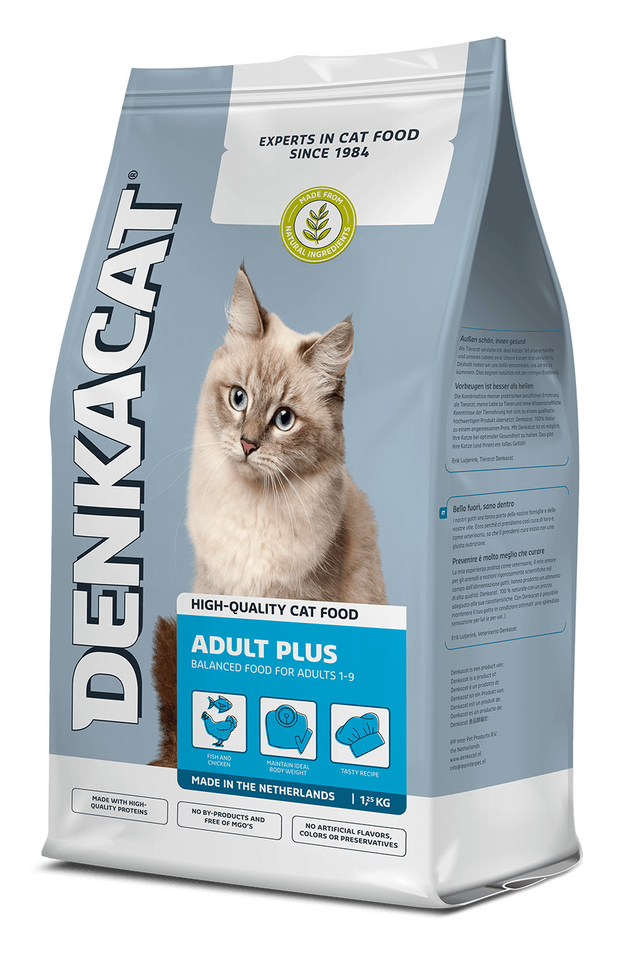 Denkacat Adult Plus Katzenfutter ist ein vollständiges Futter speziell für erwachsene Katzen im Alter von 1 - 8 Jahren. Dieses Trockenfutter hilft Ihrer Katze, sich energetisiert und gesund zu fühlen.