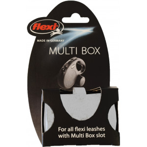 Die Flexi Multibox ist eine Kunststoffbox, die einfach an Ihrer Flexi-Hundeleine befestigt werden kann. In der Multibox können Sie Leckerchen oder Kotbeutel mitnehmen, wenn Sie mit Ihrem Hund spazieren gehen. Die Flexi Multibox ist geeignet für Hundeleinen der Größen S, M und L vom Typ New Comfort, New Classic, New Neon und Black Design. Die Box ist beidseitig zu öffnen und hat zwei Gummideckel. Sie ist 7 cm lang und 4,8 cm breit.