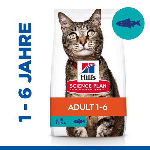 Hill's Science Plan Adult mit Thunfisch Katzenfutter ist ein unwiderstehliches Trockenfutter mit Thunfisch für erwachsene Katzen im Alter von 1 bis 6 Jahren.
