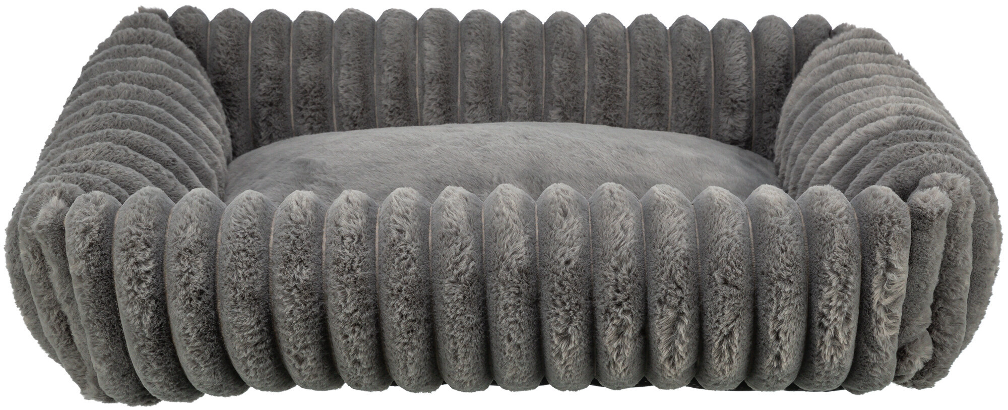 Trixie Hundebett Lonni in Breitcord-Optik grau ist ein stilvolles und besonders weiches Hundekissen mit einem fest integrierten Kissen und einem abnehmbaren Bezug.