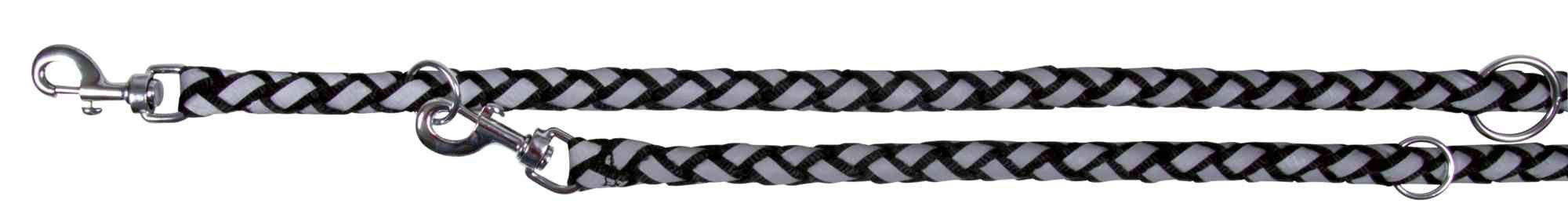Bei Wetterbedingungen mit eingeschränkter Sicht wie zum Beispiel bei Nebel oder in der Nacht ist es wichtig, dass Sie und Ihr Hund während des Spaziergangs gut sichtbar sind. Eine reflektierende Leine ist eine von vielen Möglichkeiten, die Sichtbarkeit zu verbessern. Diese schwarze, rund geflochtene Leine ist in ihrer Länge verstellbar und mit den Maßen 200 cm x 12 mm und 200 cm x 18 mm erhältlich.. Dank der praktischen Ringe und Karabiner kann die Cavo Hundeleine auf drei Längen eingestellt werden und kann so an Ihre Bedürfnisse und Vorlieben angepasst werden.