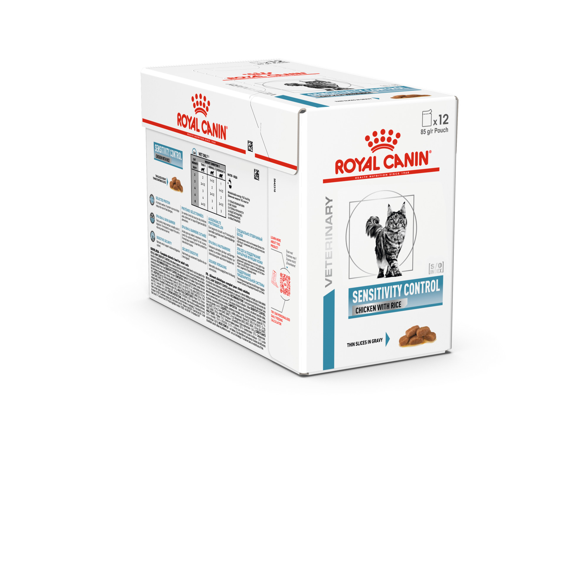 Royal Canin Veterinary Sensitivity Control Nassfutter ist eine speziell zusammengesetzte Diätnahrung für Katzen, um die Symptome von Unverträglichkeiten gegenüber bestimmten Zutaten und/oder Nährstoffen zu reduzieren.