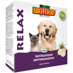 BF Petfood Relax Tabletten für Hunde und Katzen (100 Stück) sind beruhigende Hefebonbons, die Sie sowohl Ihrem Hund als auch Ihrer Katze geben können. Die Tabletten enthalten Baldrian und Passionsblume. Diese Substanzen wirken beruhigend und sorgen dafür, dass Ihr Tier bei Feuerwerk, Gewitter oder Tierarztbesuchen ruhig bleibt. Die Tabletten sind auch sehr gesund, denn sie enthalten Vitamine A, B, D und E und Mineralien, die für eine gesunde Haut und ein gesundes Fell sorgen. Darüber hinaus enthalten die Tabletten nur natürliche Antioxidantien und keine chemischen Zusätze.