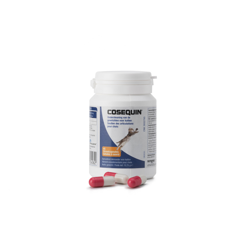 Cosequin für die Katze ist ein wirksames Supplement, das den Zustand der Gelenke älterer Katzen unterstützt. Cosequin ist ein wohlschmeckendes Pulver in Streukapseln auf Basis von Glucosamin-HCl, Chondroitinsulfat und Mangansulfat. Das Chondroitinsulfat hat eine Reinheit von 99%. Cosequin liefert wichtige Bausteine für Knorpelzellen und fördert so gesunde Gelenke.